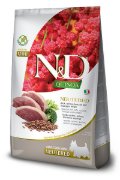 NEUTERED ADULT MINIHrana za Vašeg psa > N&D Quinoa za pseKompletna hrana za odrasle kastrirane/sterilisane pse malih rasa.N&D Quinoa Neutered je potpuna hrana za odrasle sterilisane keruše i kastrirane pse malih rasa.Preporuka za davanje: granule ponuditi bez dodataka, prateći preporučene dnevne količine prikazane u tablici. Ove količine su gruba preporuka i količinu hrane bi trebalo prilagoditi u zavisnosti od individualnih osobina svakog psa. Preporučene dnevne količine hrane se mogu povećati ili smanjiti u zavisnosti od rase, uslova sredine, fizičke aktivnosti, temperamenta, kondicije i konstitucije psa. Najbolje je preporučenu količinu podeliti u dva ili više obroka. N&D hranu bi u početku trebalo kombinovati sa prethodnom hranom, zbog razlike u sastavima i postepenog prilagođavanja na hranu sa visokim procentom proteina životinjskog porekla.Neutered Adult Mini DOSTUPNO U PAKOVANJIMA OD 2,5 KG - 7 KGSASTAVPačetina bez kostiju (20%), dehidrirani proteini pačetine (20%), slatki krompir, sušena pulpa repe, dehidrirana jaja, ekstrahovano seme kinoe (8%), pileca masnoca, dehidrirani protein haringe, vlakna graška, laneno seme, riblje ulje (od haringe), sušeni brokoli (2,5%), sušena špargla (2,5%), frukto-oligosaharidi, ekstrakt kvasca (izvor mananoligo-saharida), celuloza u prahu, sušeni pivski kvasac, ljuske i seme psillium-a, kalcijum-sulfat-dihidrat, kalijum hlorid, natrijum hlorid, glukozamin, hondroitin sulfat.NUTRITIVNI SASTOJCIADITIVI PO KGNutritivni sastojci: Vitamin A 18000IU; Vitamin D3 1200IU; Vitamin E 600mg; Vitamin C 300mg; Niacin 150mg; Kalcijum D-pantotenat 50mg; Vitamin B2 20 mg; Vitamin B6 8,1 mg; Vitamin B1 10mg; Biotin 1,5mg; Folna kiselina 1,5 mg; Vitamin B12 0,1 mg; Holin hlorid 3000mg; Beta-karoten 5mg; Cink (cinkov helat analog hidroksi-metionina) 174,6 mg; Mangan (manganov helat analog hidroksi-metionina) 68 mg; Gvožđe [gvožđe (II) helat glicin-hidrata]43,1mg; Bakar (bakarni helat analog hidroksi-metionina)12,2mg; Selen (selenirani kvasac inaktiviran)0,14960mg;L-lizin-monohidrohlorid, tehnički prečišćen 1500 mg, DL-metionin tehnički prečišćen 3500mg; Taurin 2000mg; L-karnitin 350mg. Poboljšivač ukusa i mirisa: ekstrakt zelenog čaja 100mg. Antioksidanti: ekstrakti tokoferola iz biljnih ulja 10mg.ANALITIČKI SASTAVSirovi proteini 30.00%; sirova mast 11.00%; sirova vlakna 5.70%; vlaga 9.00%; sirovi pepeo 7.80%; Kalcijum 1.20%; Fosfor 0.90%; Kalijum 0.60%; Natrijum 0.35%; Magnezijum 0.10%; Omega-6 masne kiseline 2,00%; Omega-3 masne kiseline 0,30%; DHA 0,10%; EPA 0,05%; Glukozamin 1200 mg/kg; Hondroitin sulfat 900 mg/kg.ENERGETSKA VREDNOSTEM Kcal/Kg 3444 - Mj/Kg 14,41