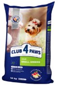 CLUB 4 PAWS PREMIUM ZA MALE RASE. KOMPLETNA SUVA HRANA ZA ODRASLE PSE.Neto težina 14 kgSASTAV: dehidrirani protein piletine 29%, pirinač, kukuruz, ječam, živinska mast (konzervisana tokoferolima), hidrolizovani životinjski protein, kukuruzni gluten, pulpa šecerne repe, minerali, lososovo ulje 0,5%, laneno seme 0,5%, pivski kvasac, banana* 0,23%, paradajz* 0,2%, glog* 0,065%, đumbir* 0,01%.ANALITIČKI SASTAV: sirovi proteini 26%, sirove masti 14%, sirovi pepeo 6,3%, sirova vlakna 2,2%, kalcijum 1,3%, fosfor 1%, omega-3 masne kiseline 0,38%, omega-6 masne kiseline 3,02%.Dodaci (po kg proizvoda): Nutritivni dodaci: Vitamin A (3a672a): 12 000 IJ, Vitamin D3 (3a671): 960 IJ, Vitamin E (3a700): 320 mg, Vitamin K3 (3a711): 5,2 mg, vitamin B1 (3a821): 2,39 mg, vitamin B2 (3a825i): 7,28 mg, vitamin B5 (kalcijum-D-pantotenat 3a841): 18,98 mg, niacin (3a314): 23,64 mg, vitamin B6 (3a831): 2,8 mg, folna kiselina (3a316): 0,42 mg, vitamin B12 (3a835): 0,167 mg, biotin (3a880): 0,095 mg, holin (holin hlorid 3a890): 2,74 g; jedinjenja elemenata u tragovima: cink (3b605): 197,55 mg, bakar (3b405): 21,15 mg, selen (3b801): 0,15 mg, antioksidansi, konzervans dozvoljen u EU. *Prirodni sastojci, sušeni.Energija (u 100 g proizvoda): 1 586,87 kJ (379,27 kcal). Čuvati na hladnom, suvom, neosunčanom mestu. Servirati na sobnoj temperaturi. Hrana se mora uvoditi postepeno u obrok, najkraće prvih 5 dana hranjenja. Količine potrebnog dnevnog unosa mogu varirati u zavisnosti od starosti, rase, okruženja i nivoa aktivnosti pse. Preporučena dnevna doza: pogledajte tablicu. Za kombinovanu ishranu, CLUB 4 PAWS Premium sos sa piletinom u želeu za odrasle pse. Proizvodnja i rok trajanja, broj serije su na pakovanju.Voda bi trebalo da je stalno dostupna. Nije za ljudsku upotrebu. Proizvodnja i rok trajanja, broj serije su na pakovanju.Proizvođač: Kormotech DOO, selo Prilbiči, Javorovski okrug, Lavovska oblast, 81062, Ukrajina, 13-20-38 PF.Uvoznik za Srbiju: Veterinarska apoteka PlusPlus d.o.o, Bulevar Mihajla Pupina 10a, 11070 Beograd, Republika Srbija. Kontakt: 011 43 20 222; info@plusplus.co.rs; www.plusplus.co.rs
